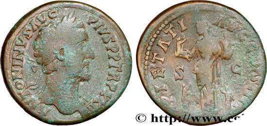 ANTONINUS PIUS Augustus Sesterce 159-160 Rome R2 copper