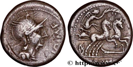 ROMA à lexergue Bige galopant à droite, conduit par la Victoire (Victoria), tenant une palme de la main droite et les rênes de la main gauche ; sous l’attelage, un gouvernail