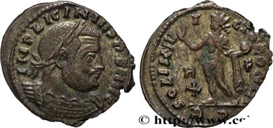 IMP LICINIVS P F AVG Buste lauré et cuirassé de Licinius Ier à droite drapé sur l’épaule, vu de trois quarts en avant (B*01)