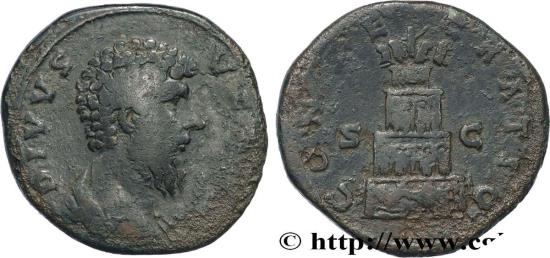 LUCIUS VERUS Consecration of Marcus Aurelius Sesterce 169 Rome R2 copper