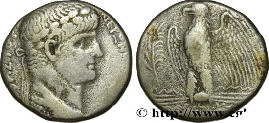NERO Augustus Tétradrachme syro-phénicien 61-62 Antioche, Syrie, Séleucie et Piérie silver Obverse : Buste lauré de Néron jeune à droite avec légide sur le cou (O*4) Reverse : Aigle debout à gauche sur un foudre ailé, les ailes déployées ; dans le champ à gauche, une palme verticale Pedigree : Cet exemplaire provient de la collection Abdo Ayoub Commentary : Exemplaire sur un flan bien centré mais court sur les légendes. Belle tête de Néron. Revers bien venu à la frappe. Patine de collection ancienne