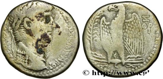 NERO Augustus Tétradrachme syro-phénicien 60-61 Antioche, Syrie, Séleucie et Piérie silver Obverse : Buste lauré de Néron imberbe à droite avec légide sur le cou (O*4) Reverse : Aigle debout à gauche sur un foudre ailé, les ailes déployées ; dans le champ à gauche, une palme verticale Pedigree : Cet exemplaire provient de la collection Abdo Ayoub Commentary : Exemplaire sur un flan ovale, bien centré, un peu court sur la légende au droit. Beau portrait de Néron avec le métal légèrement paillé. Joli revers
