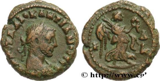 DIOCLETIAN Augustus Tétradrachme 287-288 Alexandrie, Égypte copper Obverse : Buste lauré, drapé et cuirassé de Dioclétien à droite, vu de trois quarts en arrière Reverse : L Victoire avançant à droite, tenant une palme de la main gauche et une couronne de la main droite Commentary : Flan large, centré. Joli revers. Patine marron foncé