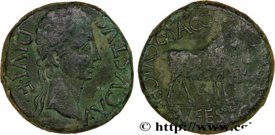 Commentary : Monnaie centrée des deux côtés. Très beau portrait d’Auguste. Usure plus importante au revers. Patine verte
