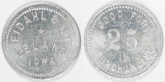 Eidahl & Co., Leland, Iowa, ca. 1912, Good For 25¢ Trade Token, Choice AU
