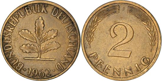 | | Coin, GERMANY - FEDERAL REPUBLIC, 2 Pfennig, 1962, Hambourg, , Bronze | | | Five oak leaves, date below, Denomination | | FEATURES |