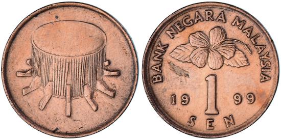 | | Coin, Malaysia, Sen, 1999, , Bronze Clad Steel, KM:49 | | | Value divides date below flower blossom, Drum, BANK NEGARA MALAYSIA | | FEATURES |