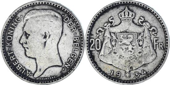 | | Coin, Belgium, 20 Francs, 20 Frank, 1934 | | | FEATURES |