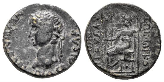 Phrygia, Amorion. Nero. 54-68 AD. AE 16.5mm (3.26 gm). Marcus Lautius & Titus Lautius, magistrates. Obv: ΝЄΡⲰΝ ΚΛΑΥΔΙΟϹ ΚΑΙϹΑΡ, laureate head left. Rev.: ЄΠΙ ΜΑΡΚΟΥ ΚΑΙ ΤΙΤΟΥ ΛΑΥΤΙⲰΝ, ΑΜΡ (monogram), Zeus seated, left, holding thunderbolt and sceptre. RPC I 5457.6 (this coin). Rare. VF. |