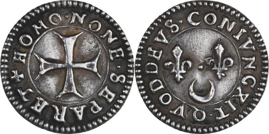 | | France, Denier à épouser, Collection Térisse, , Silver, Terisse:D108 | | | From the personal collection of Henri Térisse. Composed of two bracteates assembled. Specimen represented in Térisse's book!, QVODDEVS CNIVNGXIT, HOMO NONE SEPARET | | FEATURES |