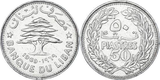 | Coin, Lebanon, 50 Piastres, 1969 |