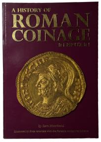 | A History of Roman Coinage in Britain, illustrated by finds recorded with the Portable Antiquities Scheme, by Sam Moorhead, 2013, 224 pages, illustrated throughout in color, A$ format, card covers. New. "Written by Sam Moorhead of the British Museum, this book provides a chronological overview of Roman coinage from the Republican period (300BC) to the early 5th century, with an emphasis on Roman coinage used in Britain. The text provides an introduction to the history of each period and then outlines the coinage (denominations, mints, contemporary copies etc.), using Portable Antiquities Scheme (PAS) and British Museum (BM) coins as illustrations. Throughout, indications are made of the numbers and distribution of particular Roman coin finds in Britain. Over 800 coins are illustrated in over 1600 colour photographs showing both obverse and reverse for each coin. There are also over 30 distribution maps." |