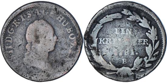 | | Coin, Austria, Joseph II, Kreuzer, 1781, Kremnitz, , Billon, KM:2056 | | | Head right, as sole ruler | | FEATURES |