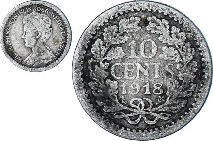 | | Coin, Netherlands, Wilhelmina I, 10 Cents, 1918, , Silver, KM:145 | | | Small head left with continuous legend, Value within wreath | | FEATURES |