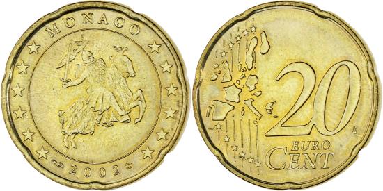 | | Monaco, Rainier III, 20 Euro Cent, 2002, Paris, , Brass, Gadoury:MC176 | | | Knight on horse, Value and map | | FEATURES |