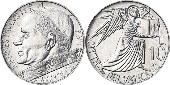 | | Coin, VATICAN CITY, John Paul II, 10 Lire, 1985, FDC, , Aluminum | | | Head left, Angel with gospel of St. Matthew | | FEATURES |