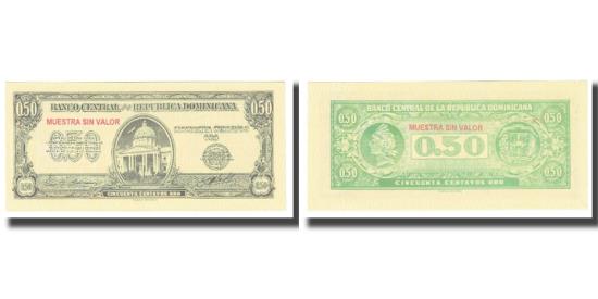 | | Banknote, Dominican Republic, 50 Centavos Oro, KM:90a, UNC(65-70) | | | Issued note., Palacio Nacional in oval frame at center., Black on yellow safety paper., Green. | | FEATURES |