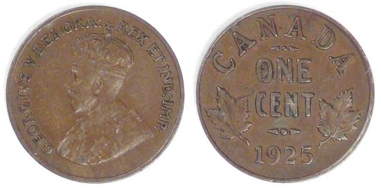 CANADA - Confederation, George V, 1925 Cent, Choice VF