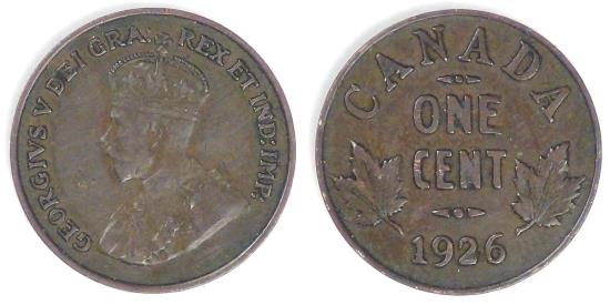 CANADA - Confederation, George V, 1926 Cent, Choice VF
