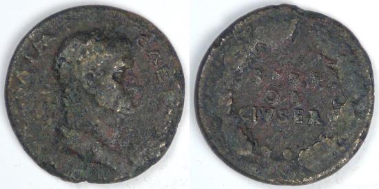 This rare sestertius has nice Very Fine detail though is a bit rough from environmental damage.