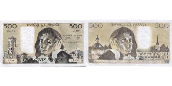 | | France, 500 Francs, Pascal, 1985, Z.230, EF(40-45), Fayette:71.33 | | | FEATURES |