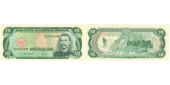 Banknote, Dominican Republic, 10 Pesos Oro, 1988, 1988, KM:119c, UNC(64)Banknote, Dominican Republic, 10 Pesos Oro, 1988, 1988, KM:119c, UNC(64)