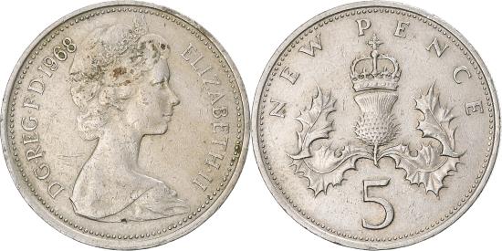 | | Coin, Jersey, Elizabeth II, 5 New Pence, 1968, , Copper-nickel, KM:32 | | | Young bust right, Shield above written value | | FEATURES |