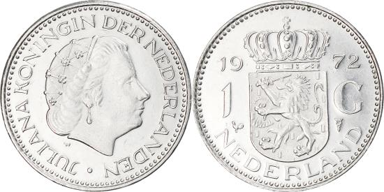 | | Coin, Netherlands, Juliana, Gulden, 1972, , Nickel, KM:184a | | | Head right, Crowned arms divide date | | FEATURES |