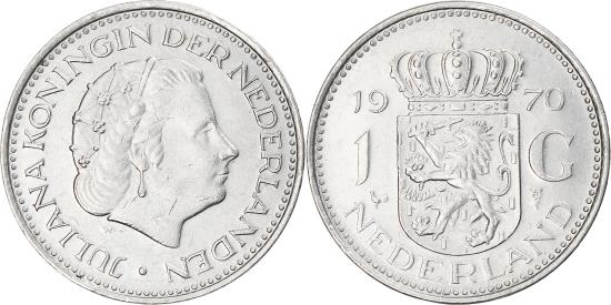| | Coin, Netherlands, Juliana, Gulden, 1970, , Nickel, KM:184a | | | Head right, Crowned arms divide date | | FEATURES |