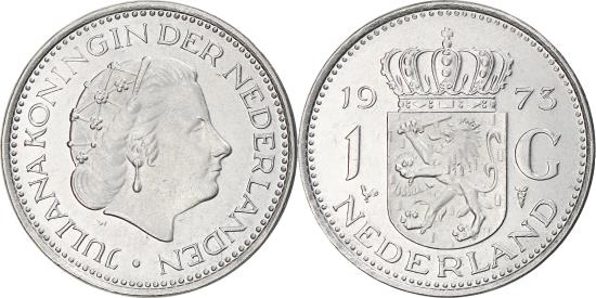 | | Coin, Netherlands, Juliana, Gulden, 1973, , Nickel, KM:184a | | | Head right, Crowned arms divide date | | FEATURES |