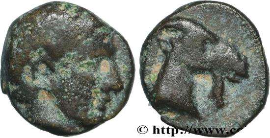 Anépigraphe Tête laurée d’Apollon à droite, les cheveux longs tombant sur la nuque