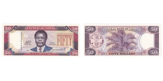 Banknote, Liberia, 50 Dollars, 2011, KM:29d, UNC(65-70)Banknote, Liberia, 50 Dollars, 2011, KM:29d, UNC(65-70)