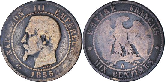 | | Coin, France, Napoleon III, Napoléon III, 10 Centimes, 1855, Paris, | | | Napoléon III, Head left, Eagle, NAPOLEON III EMPEREUR | | FEATURES |