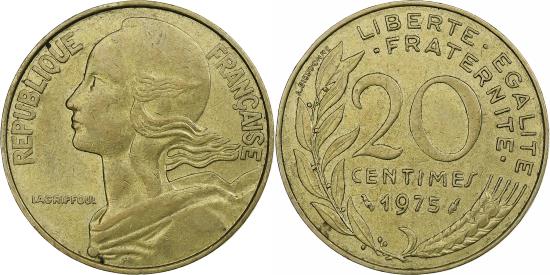 | | France, 20 Centimes, Marianne, 1975, Pessac, Aluminum-Bronze, , KM:930 | | | FEATURES |