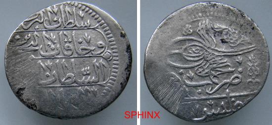 | 146HH3Y) OTTOMAN GEORGIA and Armenia, SULTAN AHMAD III, 1722-1730 AD, AR Abbassi 5.07 grms, 23 mm, minted at Tiflis (Tiblisi) type of Album A-2708, SCARCE; VF. |