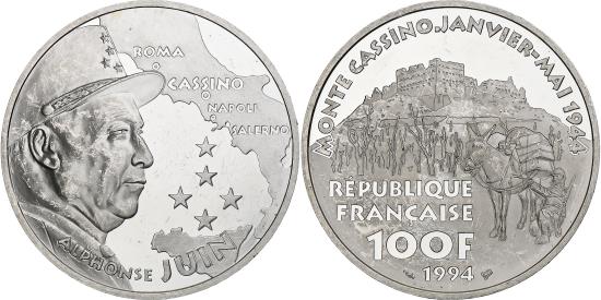 | | France, 100 Francs, Maréchal Juin, 1994, Monnaie de Paris, BE, Silver | | | FEATURES |