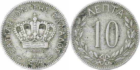 | | Greece, George I, 10 Lepta, 1894, Paris, Copper-nickel, , KM:59 | | | FEATURES |