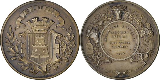 | France, Medal, Concours, Race Bovine Normande, Caen, Agriculture, 1906 |