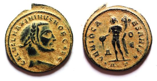 BEAUTIFUL MAXIMINUS II AE FOLLIS. ORIGINAL DESERT PATINA
