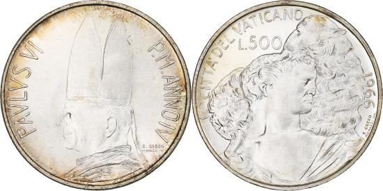 | | Vatican, Paul VI, 500 Lire, 1966 - Anno IV, Rome, , Silver, KM:91 | | | FEATURES |