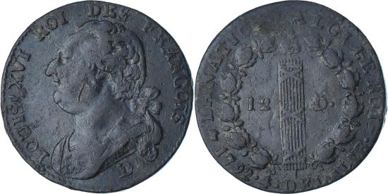 | France, Louis XVI, 12 deniers françois, 1792/1 - An 4/3, Lyon, 2e sem |