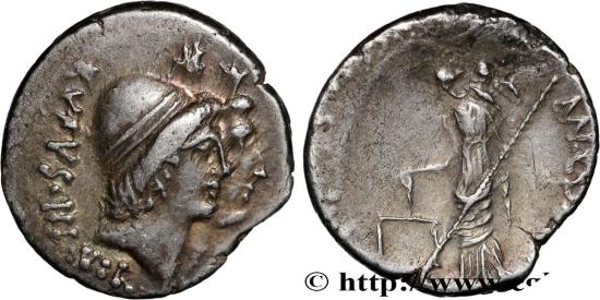 RVFVS III. VIR Bustes accolés des Dioscures à droite, coiffés du bonnet diadémé surmonté dune étoile