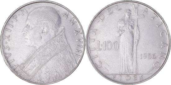 | Coin, VATICAN CITY, Pius XII, 100 Lire, 1956, , Stainless Steel, KM:55 |