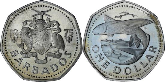 | | Barbados, Dollar, 1975, Proof, , Cupronickel, KM:14.1 | | | FEATURES |