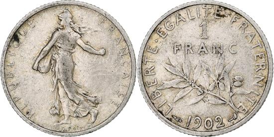 | | Coin, France, Semeuse, Franc, 1902, Paris, , Silver, KM:844.1 | | | Semeuse, Figure sowing seed, Leafy branch divides date and denomination, Without mint mark. | | FEATURES |