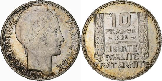 | | France, Turin, 10 Francs, 1929, Paris, , Silver, KM:878, Gadoury:801 | | | Turin, Without mint mark. | | FEATURES |
