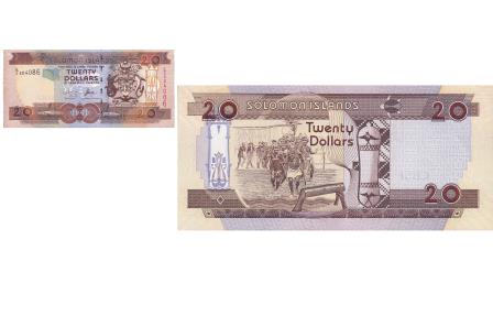 | | Banknote, Solomon Islands, 20 Dollars, 2006, KM:28, UNC(65-70) | | | Dancers., Brown. | | FEATURES |