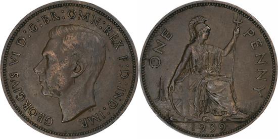| | Great Britain, George VI, Penny, 1939, Bronze, , KM:845 | | | Head left, Britannia seated right, T. H. Paget | | FEATURES |