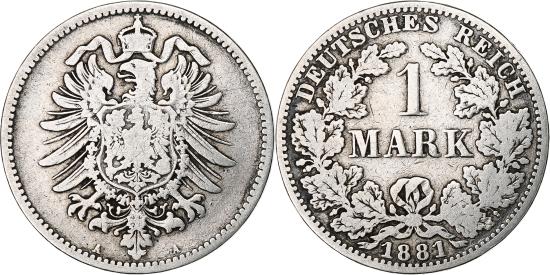 | | GERMANY - EMPIRE, Wilhelm I, Mark, 1881, Berlin, Silver, , KM:7 | | | Denomination within wreath, Crowned imperial eagle | | FEATURES |