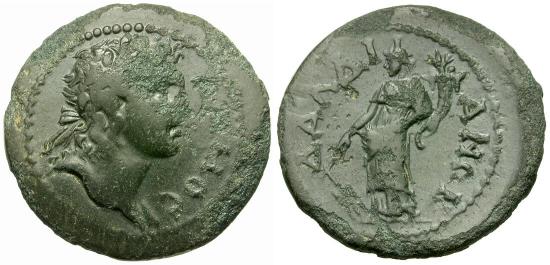 ΔAΛΔI-ANÆN, Tyche standing left, holding rudder and cornucopia